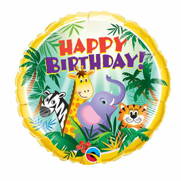 This Animal Safari 18″ foil balloon is perfect for a Birthday Party! Covered with cuteness it features a Zebra, Giraffe, Elephant & Tiger!